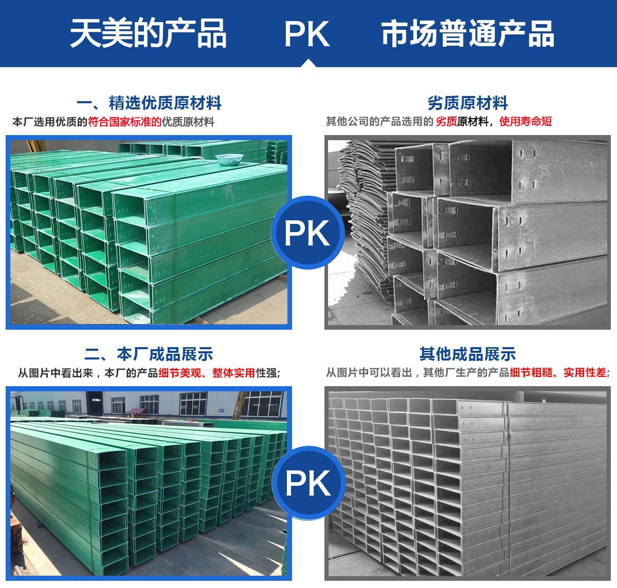 本公司主要產(chǎn)品有玻璃鋼電纜橋架、酚醛樹脂橋架、玻璃鋼除霧器、輪廓樁、防腐檁條、污水池蓋板、模壓化糞池、方形冷卻塔、圓形冷卻塔、RTM真空導(dǎo)入產(chǎn)品、熄焦塔除塵裝置等,公司設(shè)備較優(yōu)良,技術(shù)力量強(qiáng),工人操作水平高,能夠獨(dú)立的進(jìn)行玻璃鋼產(chǎn)品的制造和設(shè)計、適用于各大工程的建設(shè)。